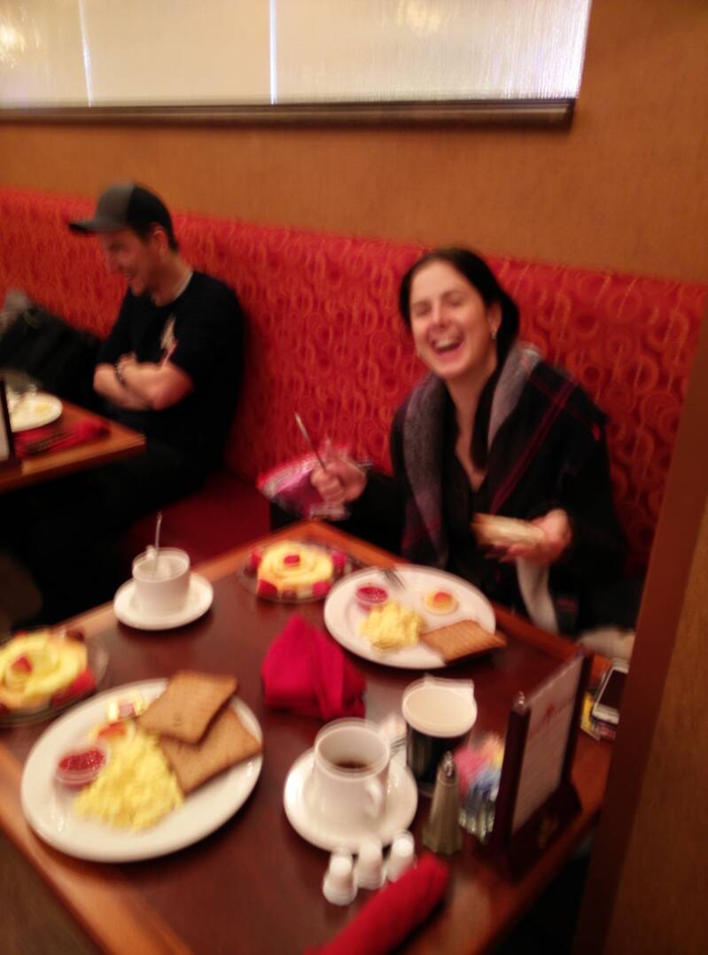 Na het ontbijt bleek dat we pas ‘s avonds zouden vertrekken. Onze dochter stond aan de balie, we wilden Philadelphia in, maar hadden geen jassen,